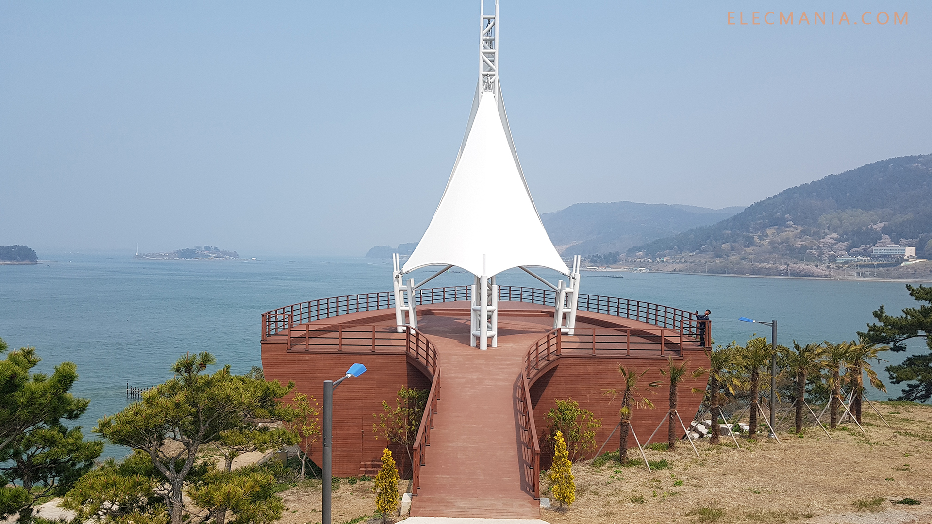 공원 정상(?)에는 공원 주변의 바다와 섬을 볼 수 있는 전망대가 또 설치 되어 있으며 전망대에서 유채꽃 사진과 바다 사진을 찍기에도 좋았습니다.  그리고 초양도 말고도 늑도에도 유채꽃이 많이 피어 있었습니다.