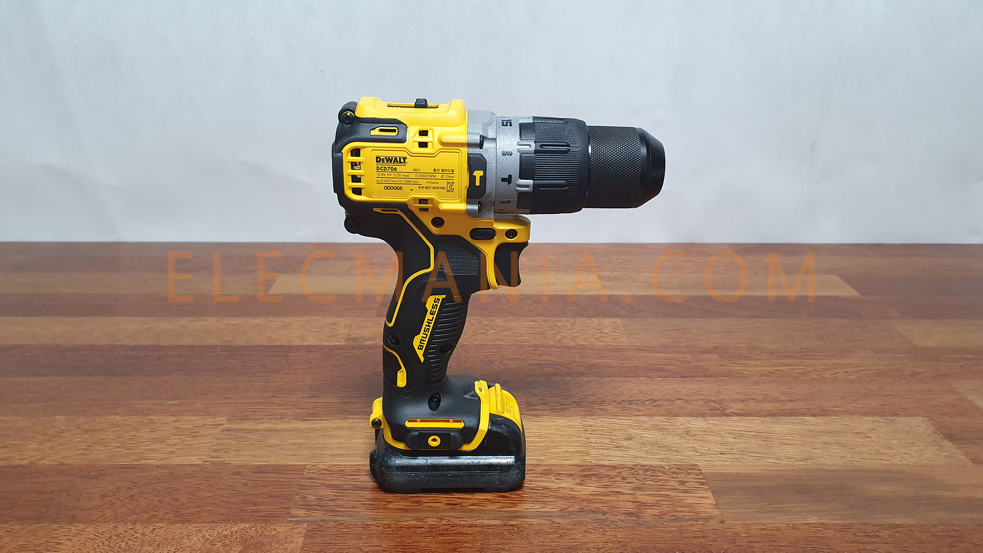 기본적으로 DCD701에 해머 기능 추가로 척의 재질과 길이가 변경된 부분만 다를 뿐 모습의 거의 똑같다고 보시면 되며 무게는 약 90g 증가되었는데 실제로 들어보면 무게 차이는 조금 많이 무겁게 느껴졌습니다.