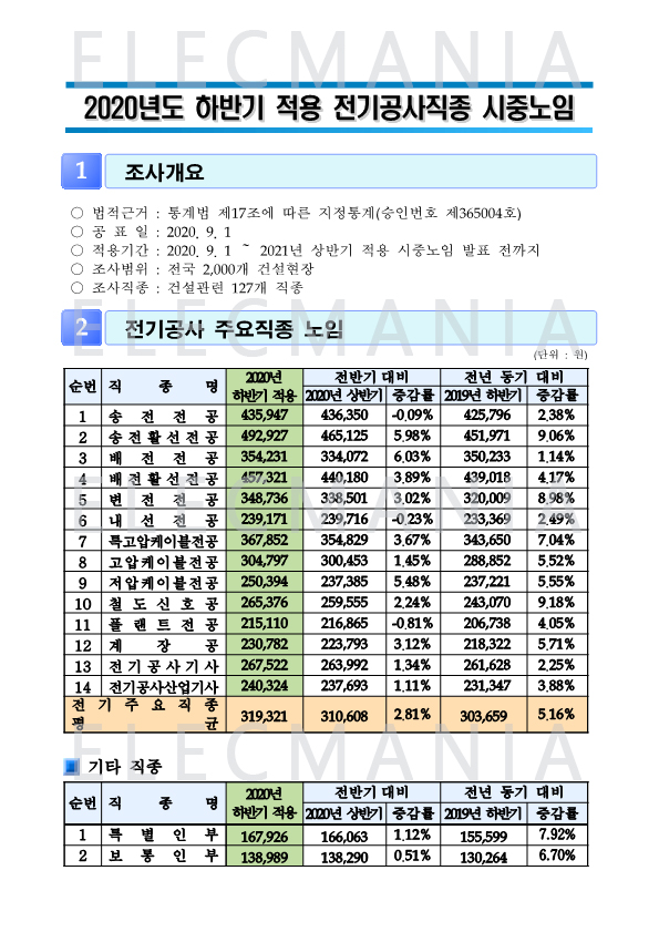 ○ 적용기간 : 2020. 9. 1 ~ 2021년 상반기 적용 시중노임 발표 전까지