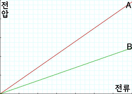 | 기울기 | 전압/전류=저항 RA>RB |